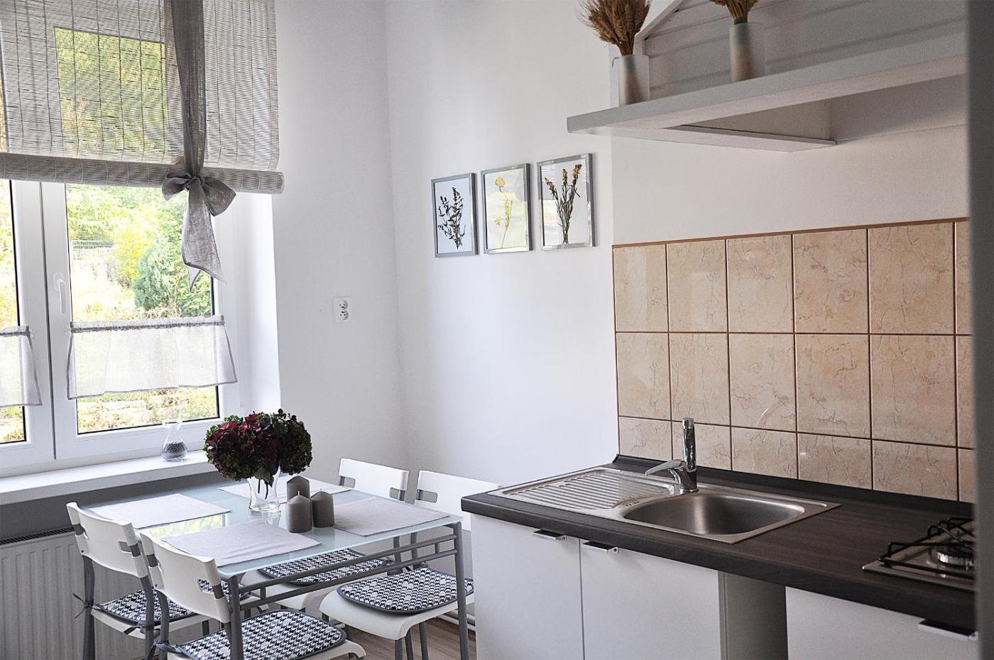 Apartament. This apartment features 1 living room, 1 separate bedroom and 1 bathroom with a shower and free toiletries. In the well-fitted kitchen, guests will find a stovetop, a refrigerator, kitchenware and a microwave. The apartment features a tea and coffee maker, a seating area, a dining area, a flat-screen TV with cable channels, as well as garden views. The unit has 2 beds. Apartament - 4 osobowy. Powierzchnia pokoju ok.: 45 mkw.