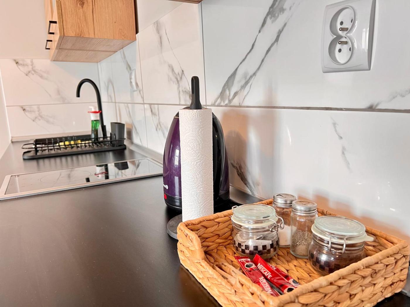 Apartament z 1 sypialnią. This apartment features 1 living room, 1 separate bedroom and 1 bathroom with a shower. Meals can be prepared in the well-fitted kitchen, which features a stovetop, a refrigerator, kitchenware and a tea and coffee maker. The apartment has parquet floors, a seating area with a flat-screen TV, a sofa, heating as well as city views. The unit has 1 bed. Apartament - 2 osobowy. Powierzchnia pokoju ok.: 35 mkw.
