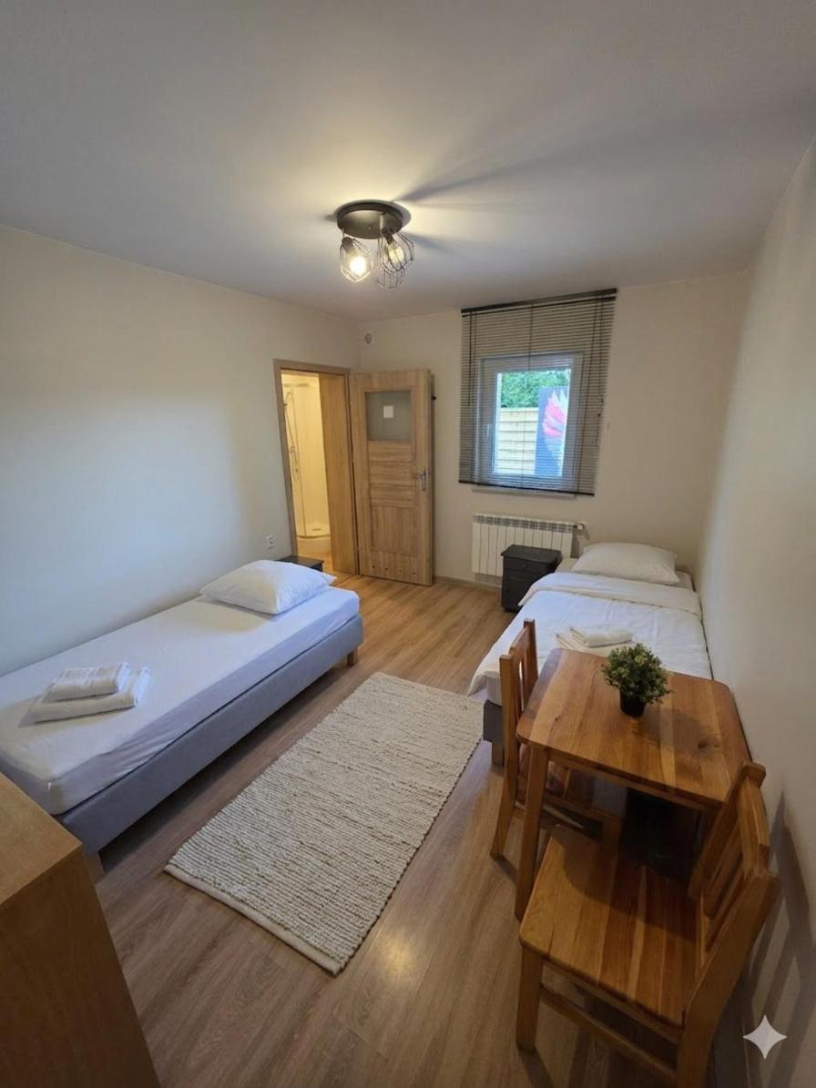 Pokój dwuosobowy typu Standard z 2 podwójnymi łóżkami. The twin room offers a dining area and an electric kettle, as well as a private bathroom featuring a shower. Guests will find a stovetop, a refrigerator, kitchenware and a microwave in the well-equipped kitchen. The twin room also offers a barbecue. The twin room provides a washing machine, a private entrance, soundproof walls, a flat-screen TV, as well as garden views. The unit offers 2 beds. Pokój z 2 łóżkami pojedynczymi - 2 osobowy. Powierzchnia pokoju ok.: 9 mkw. ;