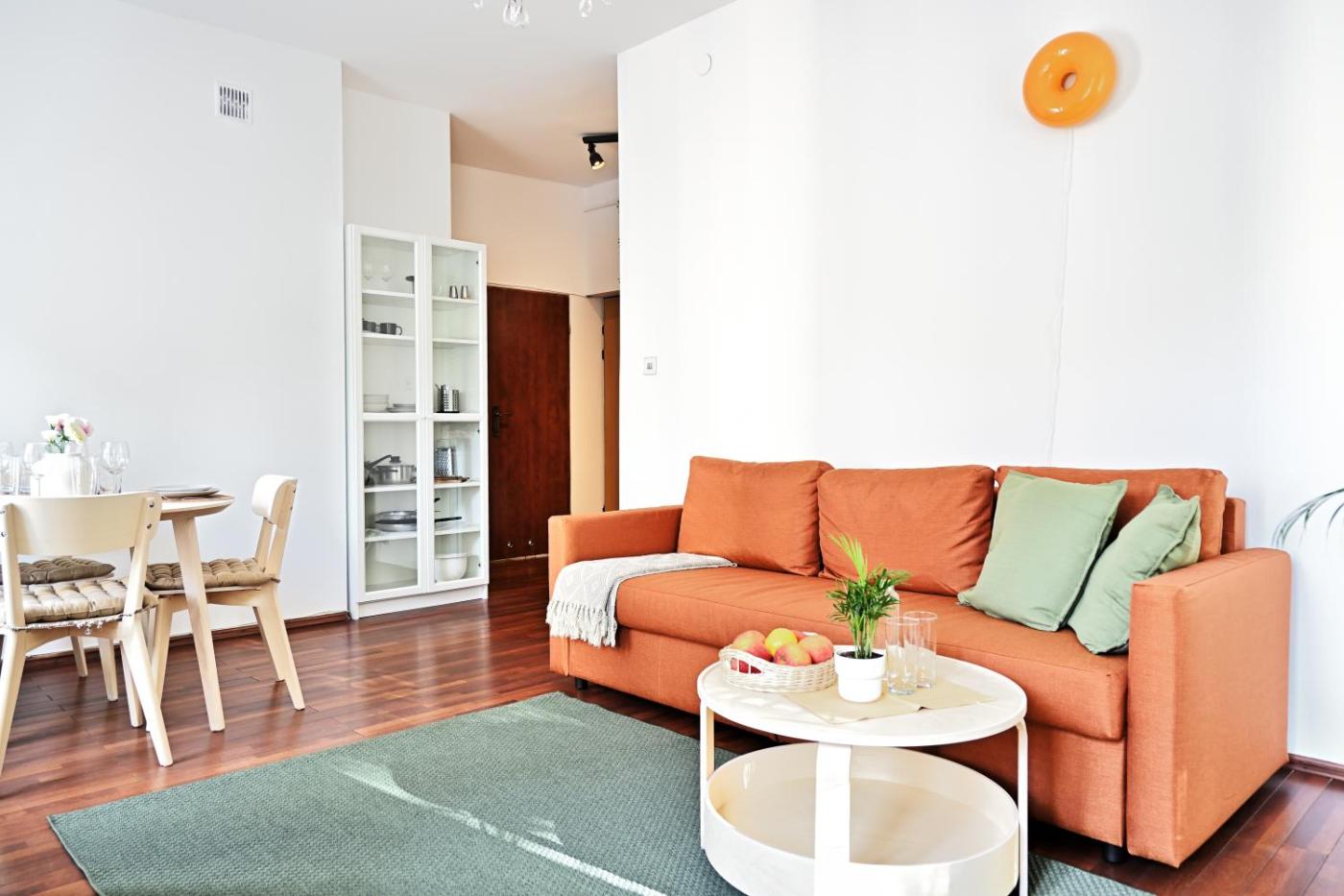 Apartament z 1 sypialnią. The well-fitted kitchenette features a stovetop, a refrigerator and kitchenware. The apartment offers a flat-screen TV, a washing machine, a private entrance, a tea and coffee maker as well as city views. The unit offers 2 beds. Apartament - 4 osobowy. Powierzchnia pokoju ok.: 36 mkw.
